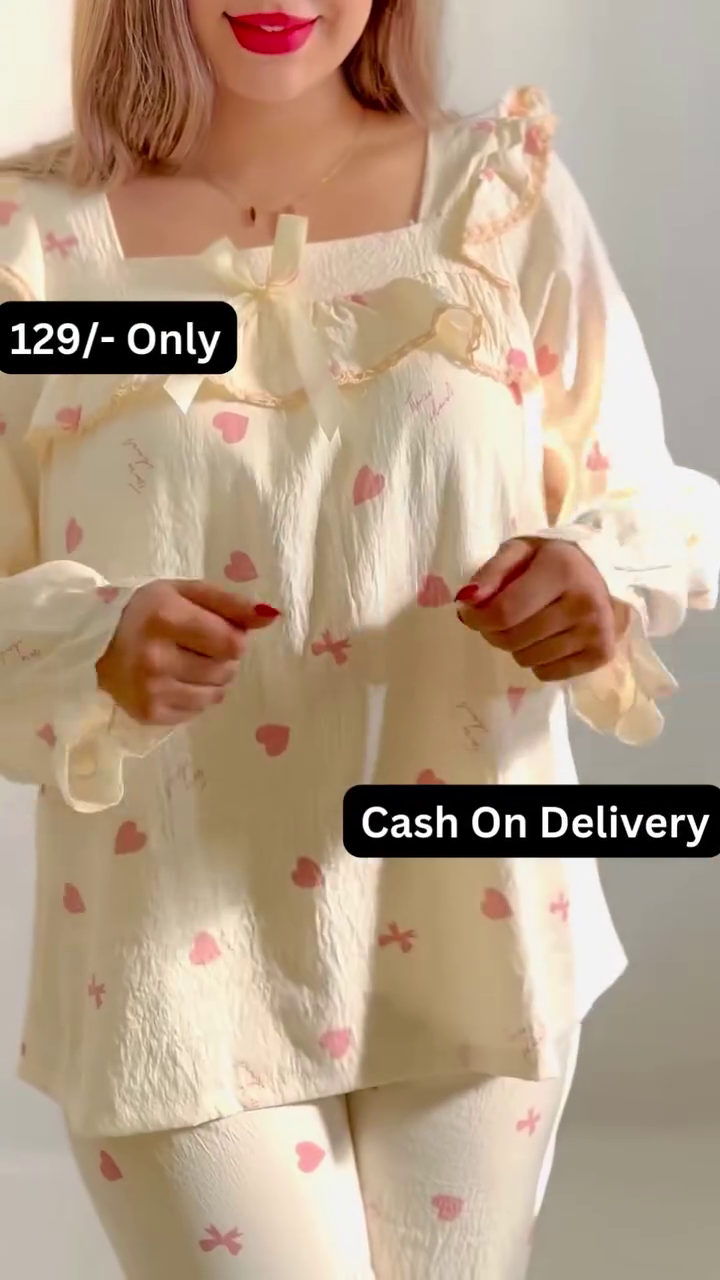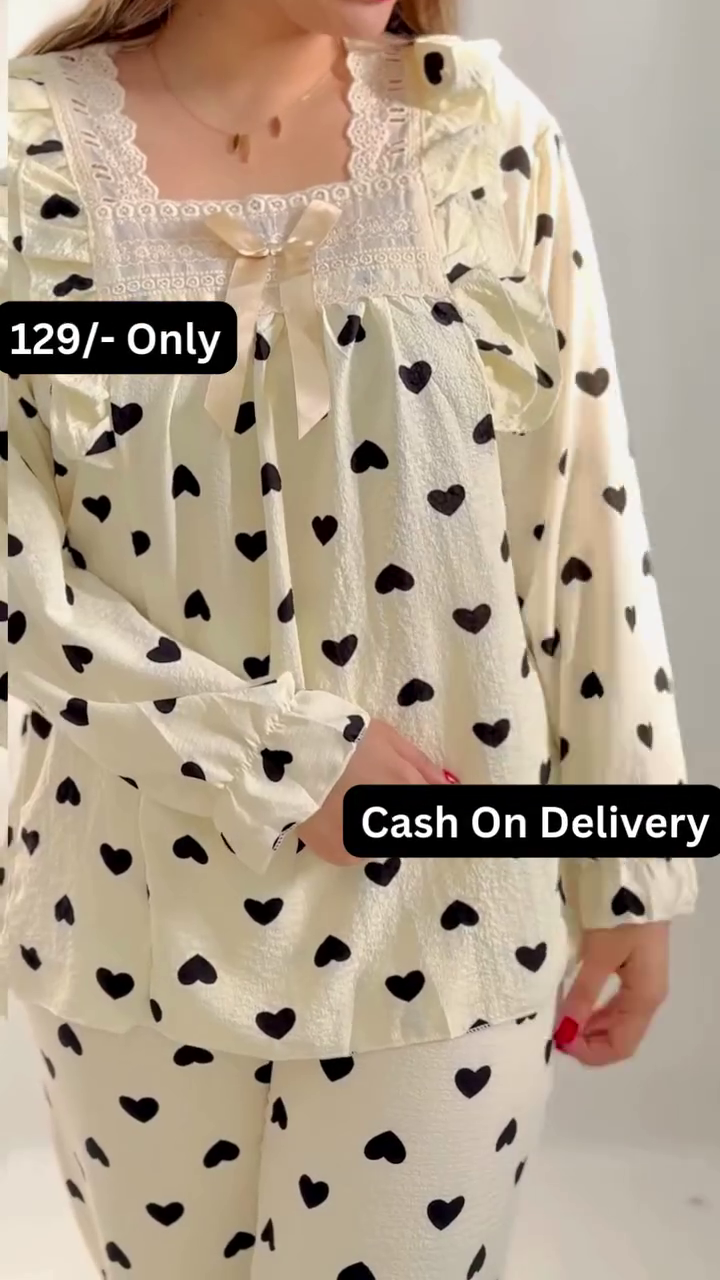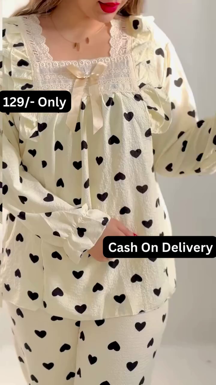 / 🖤👗 Heart Print Night Suit for Ladies! 😍🔥