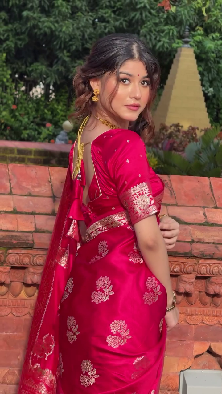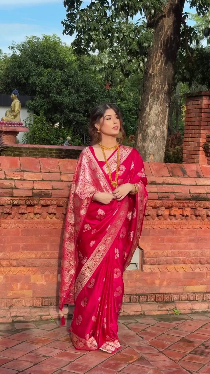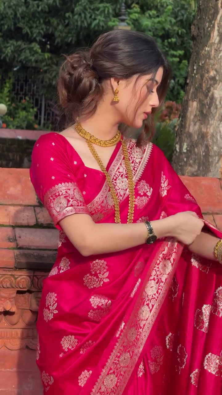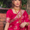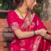 ✨ Royal Pink Banarasi Silk Saree with Golden Zari Work 🌸