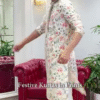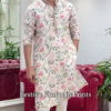 Floral Ivory Kurta – A refreshing ivory base adorned with delicate pink and green floral prints, this kurta is perfect for daytime festivities. The subtle yet eye-catching patterns evoke a sense of grace, making it an ideal choice for Haldi ceremonies, pujas, and festive lunches.